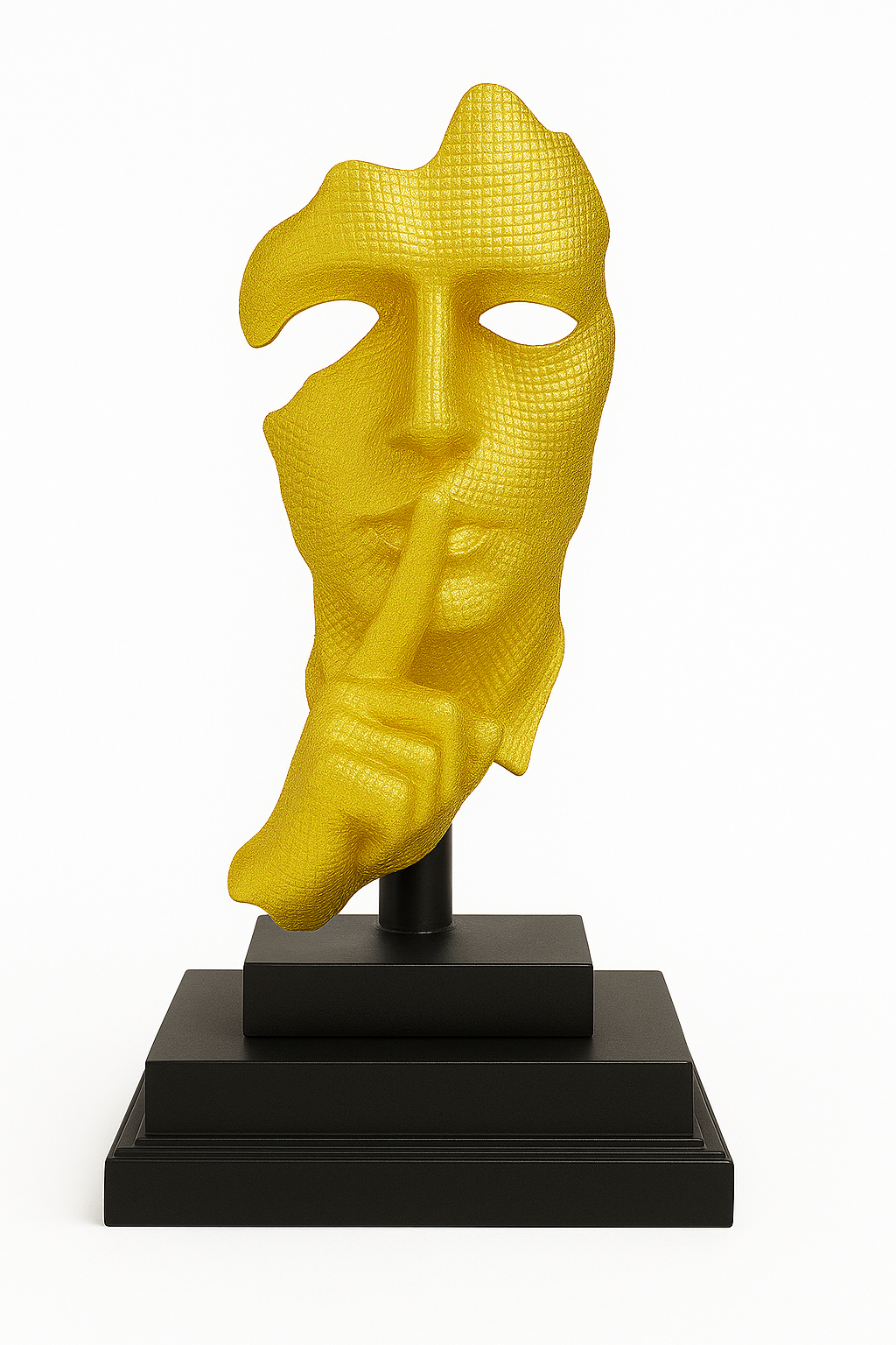 Un’opera che unisce mistero ed eleganza: la Maschera del Silenzio Dorato è simbolo di introspezione e raffinatezza. Le sue linee moderne e la finitura in oro intenso trasformano ogni ambiente in un luogo di arte e fascino. Perfetta per chi ama oggetti dal carattere deciso e sofisticato. 🖤