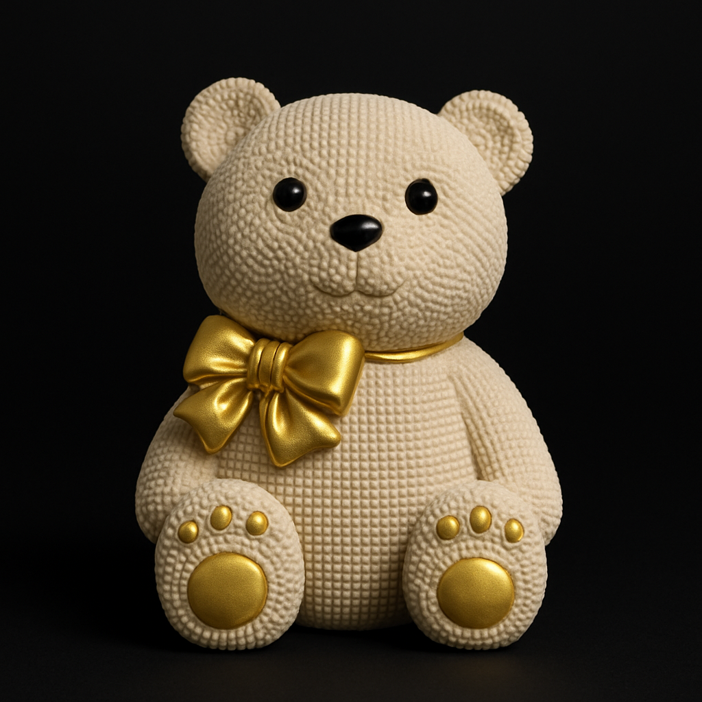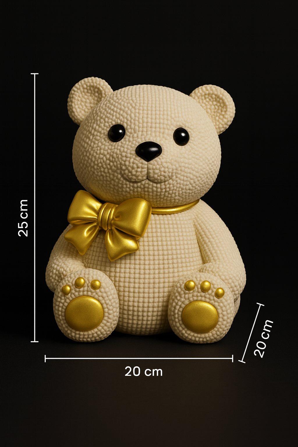 Un tenero orsetto color avorio dal design elegante, arricchito da dettagli dorati sul fiocco e sulle zampette. Realizzato in resina di alta qualità con texture raffinata, rappresenta dolcezza e raffinatezza in un’unica opera. Perfetto come complemento d’arredo o come regalo prezioso e originale.
